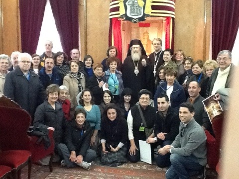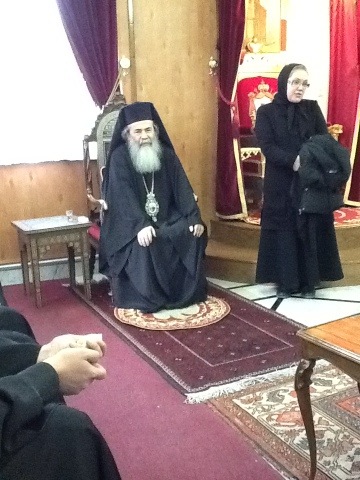 As a special treat for our group, our travel company arranged for us to meet the Patriarch of Jerusalem. We enjoyed some treats and his special blessings. The patriarchate had some beautiful icons and paintings which will follow along with our photo with His Beatitude.