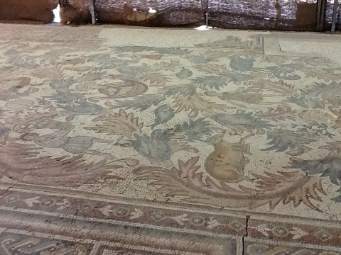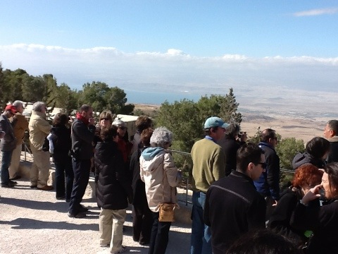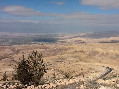 Today we are on the road to Jordan. After crossing the border we drive up to Mt. Nebo, about ten miles east of the northern tip of the Dead Sea. This is the spot where God showed Moses the promised land of Canaan, but also told him that he would not live to take possession of the land (Numbers 20:6-12). We know that Moses lived out his 120 years of life somewhere on this 2700 ft. tall mountain. Franciscan monks have guarded the area for many years and have erected a church and monastery on this site which has been host to Christian churches since 394AD, according to excavations. Many ancient Christian mosaics have been found at this site and have been preserved for future generations. Those pictures are below. Currently, a new church and museum are being erected to house these treasures.