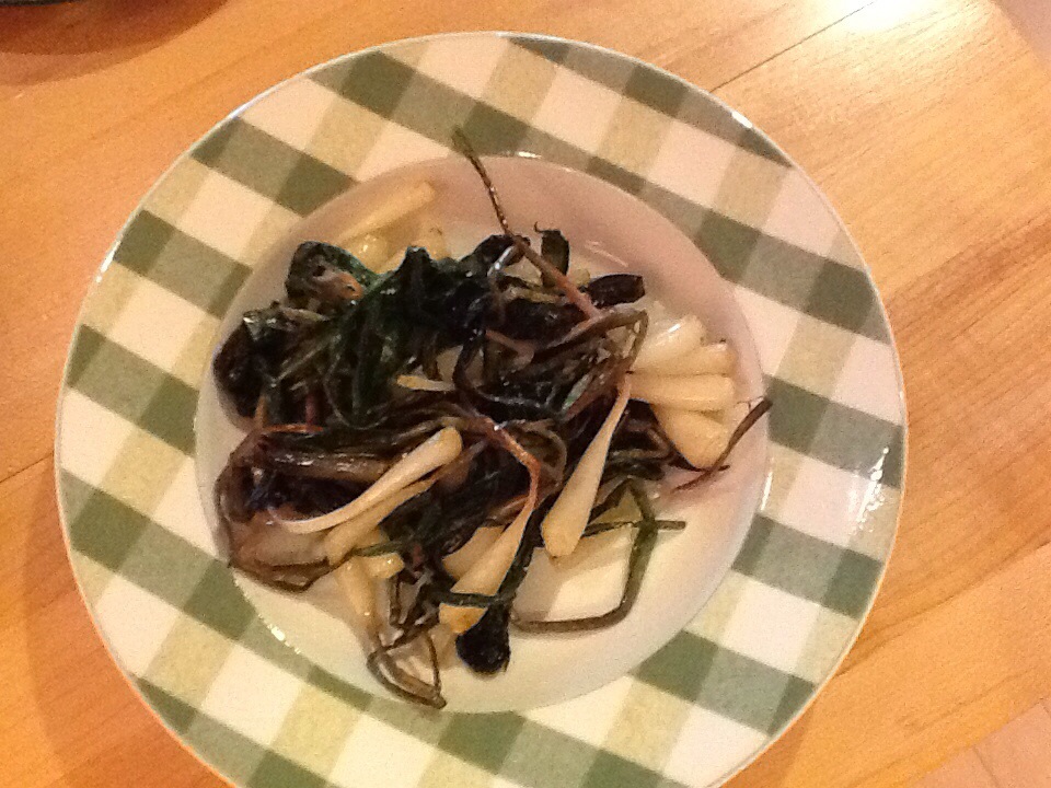 Sautéed ramps in olive oil and a char grilled locally-grown sirloin steak with a teriyaki-garlic marinade complete the meal. Dinner anyone?