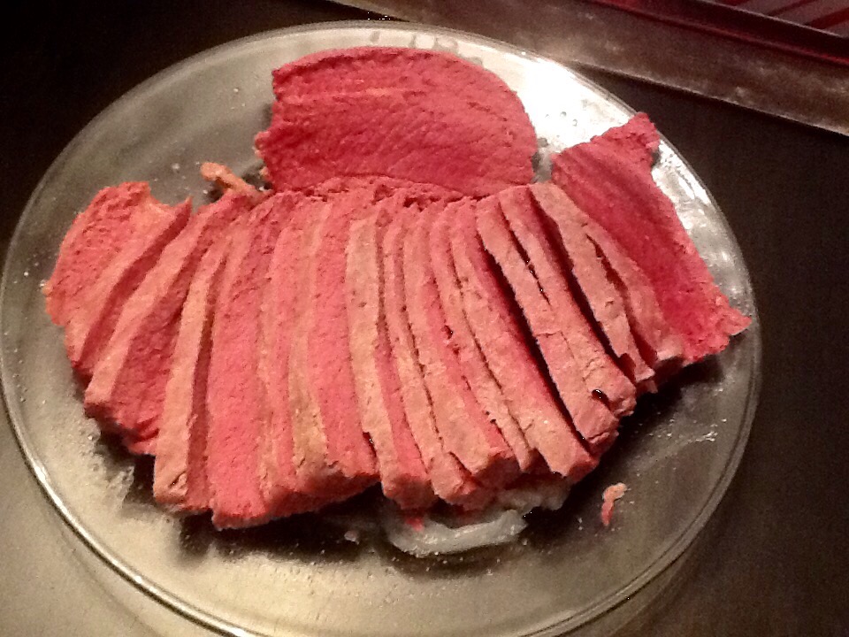 Rainy day comfort food is in order today. I ask Sonny what I can cook for him while he is visiting. He is a man of few words, a Gentle Giant. But a little nudging merits the answer. Corned Beef and Cabbage with boiled vegetables. Perfect for a cold, rainy day in NC. Boil the corned beef with spice package and a few extra peppercorns. Throw in a couple bay leaves. Skim off scum for a clear broth. After one hour add potatoes, carrots, onions and cabbage quarters. Continue cooking for another hour. Remove veggies and top with a couple pats of buttter. Make mustard sauce for serving. 3/4 cup sour cream, 2T whole grain mustard, 1t horseradish, 2t cornstarch. Slowly whisk in 1/2 cup of liquid from corned beef pot. Microwave on 80% power for 1 minute. Whisk. Repeat cooking for 1 more minute. Slice your corned beef and enjoy!
