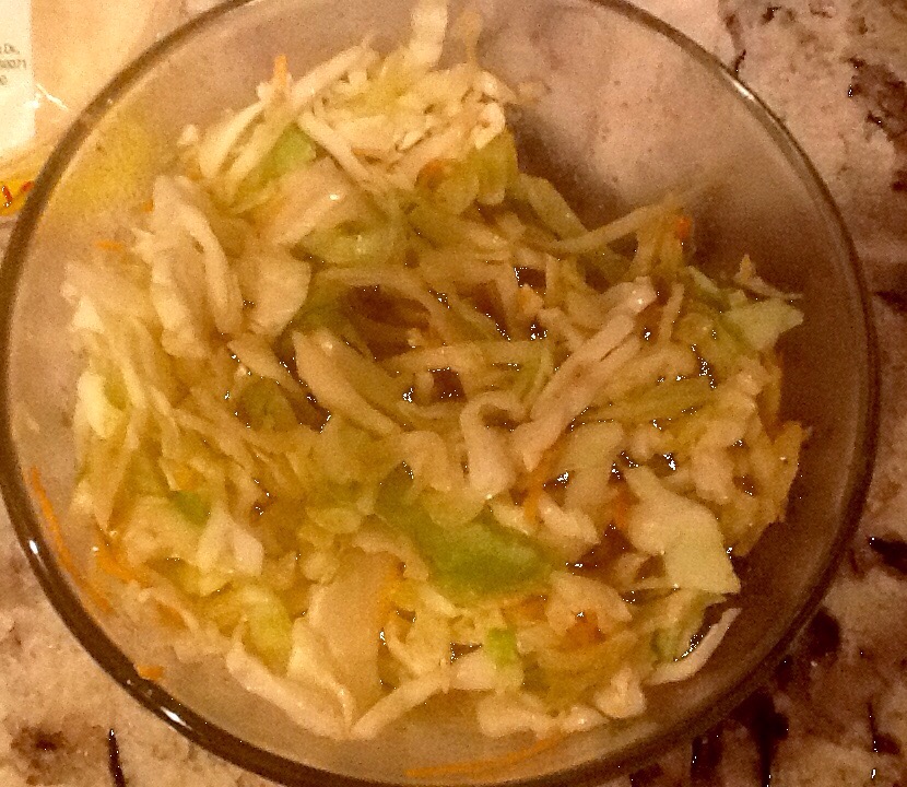 Some very Mexican accompaniments: marinated cabbage slaw, corn tortillas, homemade guuacamole…