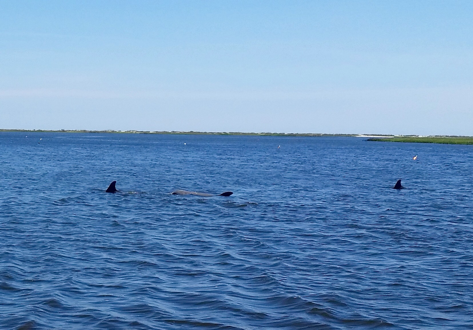 April 27th is my lucky day! It is a beautiful, dry and slightly breezy spring day in Coastal North Carolina. We are out on the boat again and have come across a pod of porpoises on the intracoastal waterway!