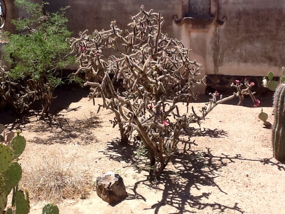 The beautiful gardens surrounding the mission contain many species of cacti…