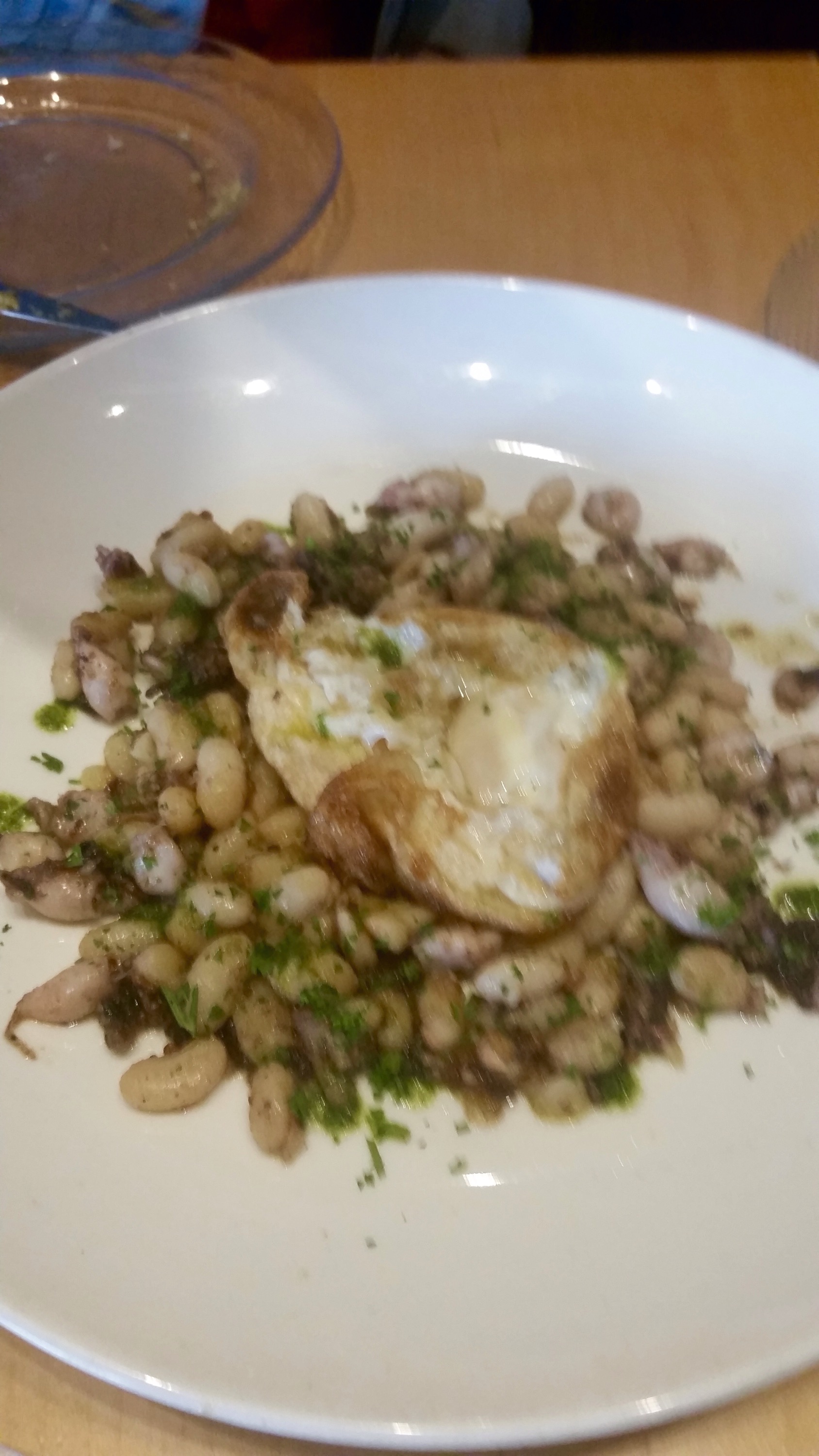 Finally, my favorite of the evening…Puntillitas de Cadiz…. Baby squid and beans in a green sauce topped with a fried egg…estupendos!!