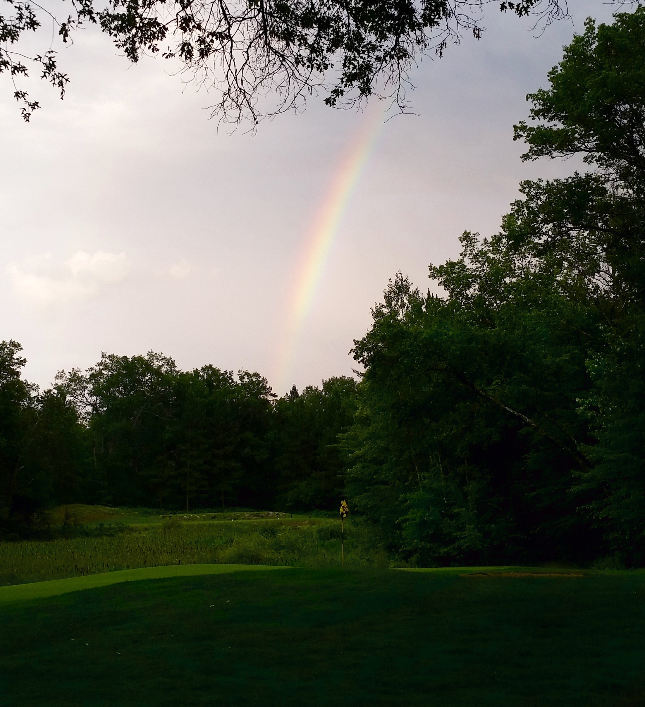It’s summer in northern Michigan and the weather is as changeable as ever! Cloudbursts all day! Sunshine off and on! Waiting out the evening’s shower netted me a couple of great pics! The beloved par 3 right before our log home had a wonderful bonus tonight…..for a change….