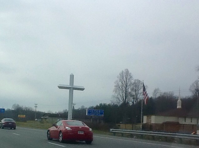 Above, the countryside of Winchester, VA. Below, a larger than life cross in Bristol, VA.