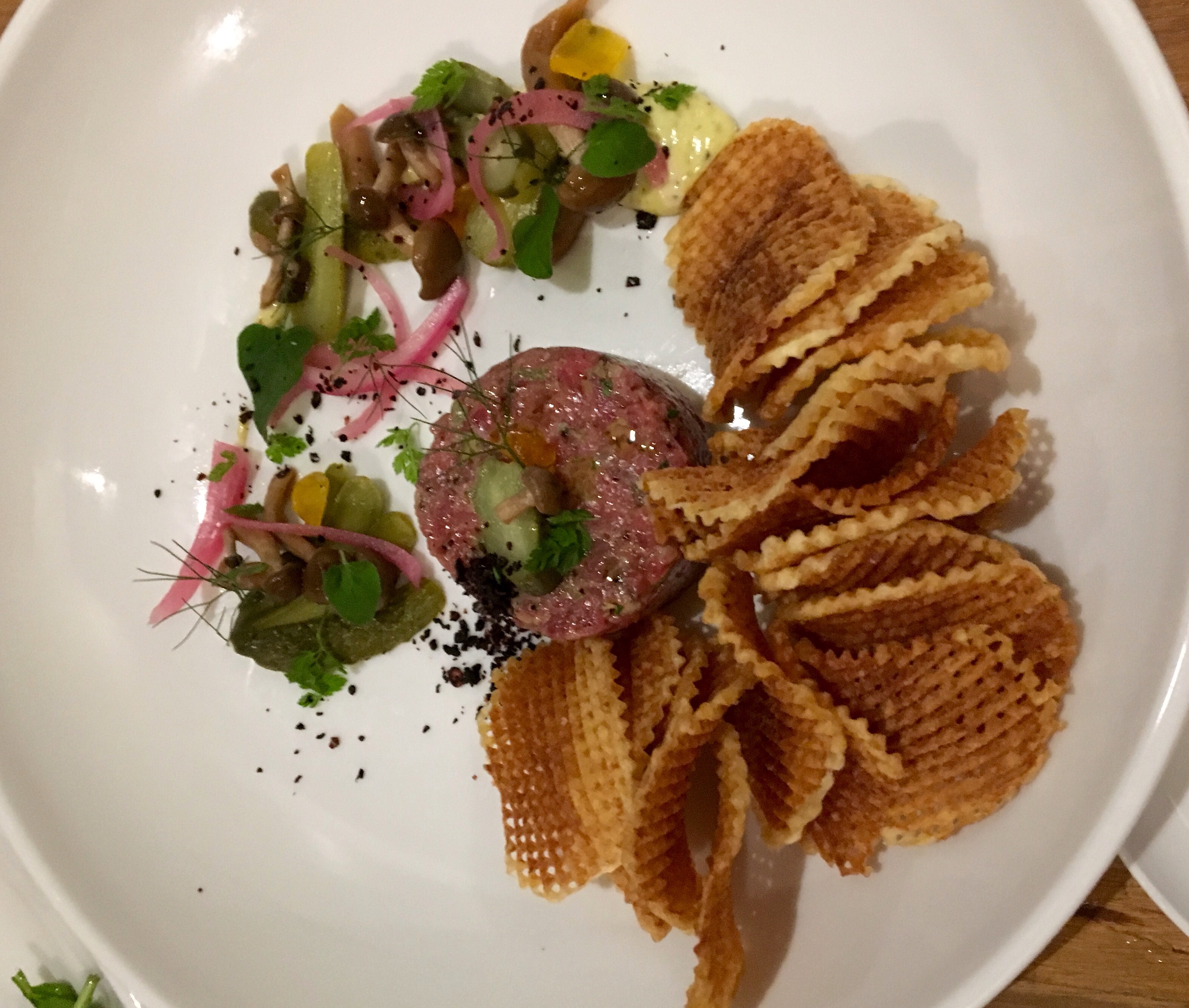 The menu highlights locally sourced ingredients like oysters, crab and shrimp with some creative license. An apprenticeship under Top Chef contestant Hugh Acheson prepared Chef Neff for a place just like this. Many of the foodie favorites are available, like Steak Tartare, expertly hand cut and wonderfully seasoned and paired with hand cut potato chips, a black garlic aioli and some dainty pickled veg.