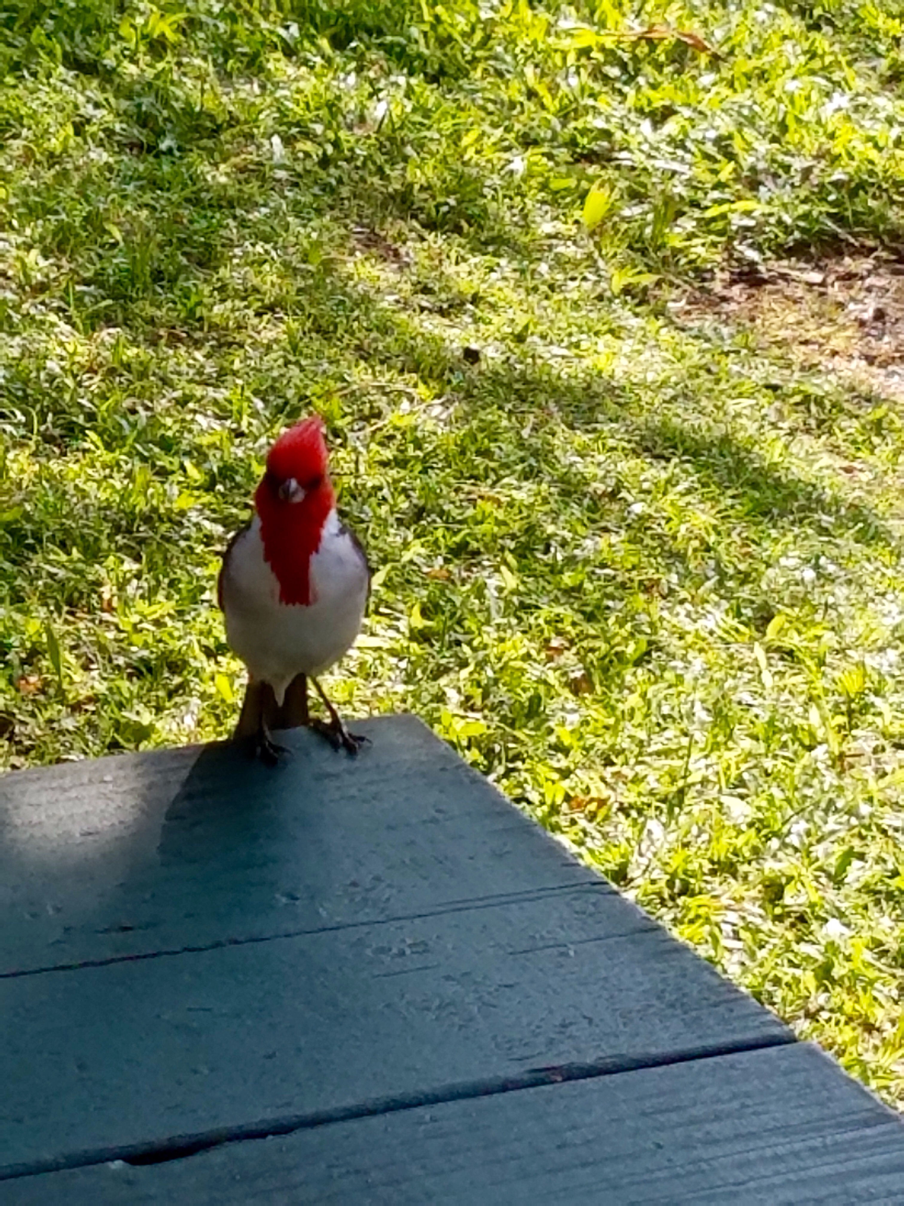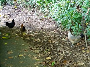 The windy roads don’t bother these guys! Native red crested cardinals and chickens!