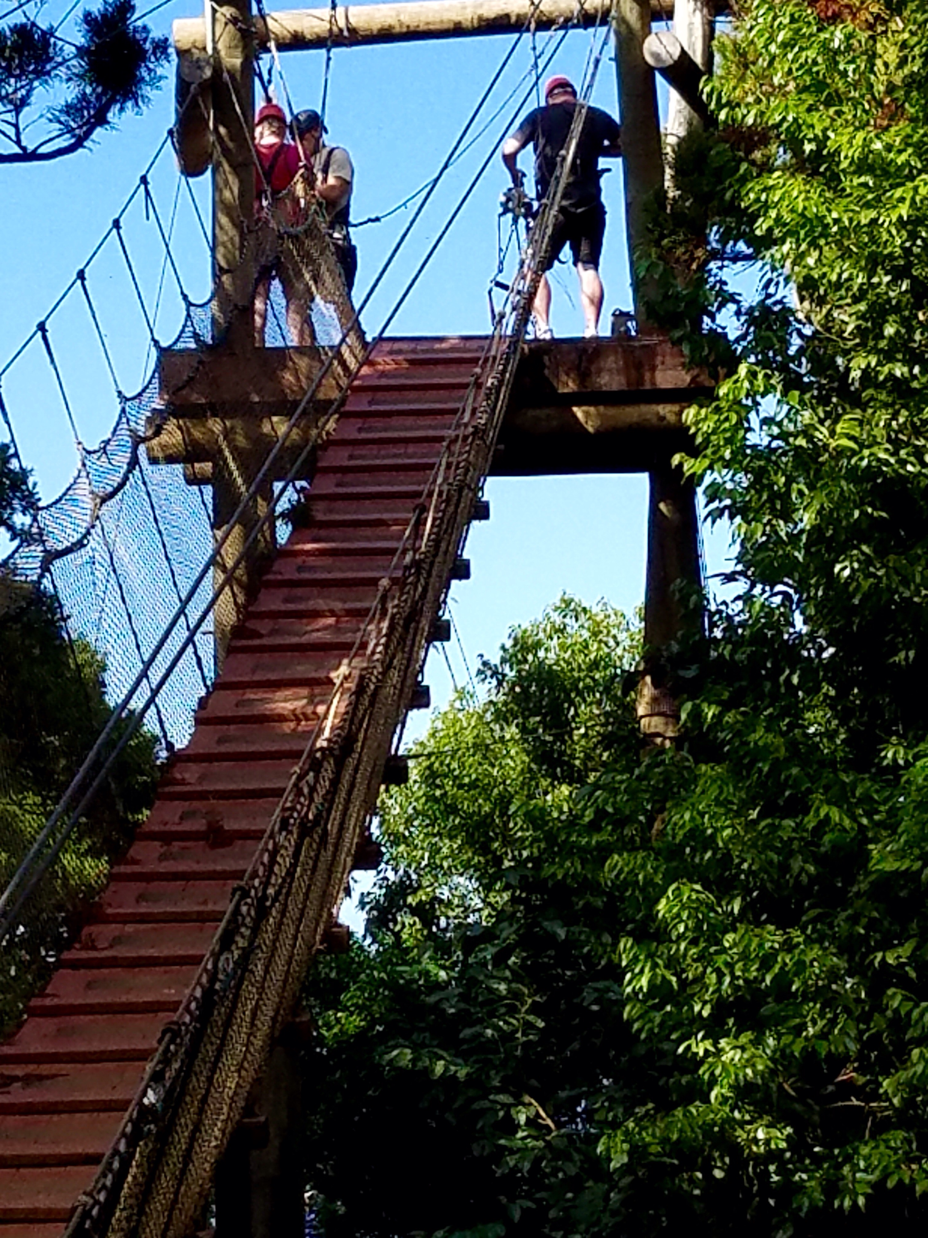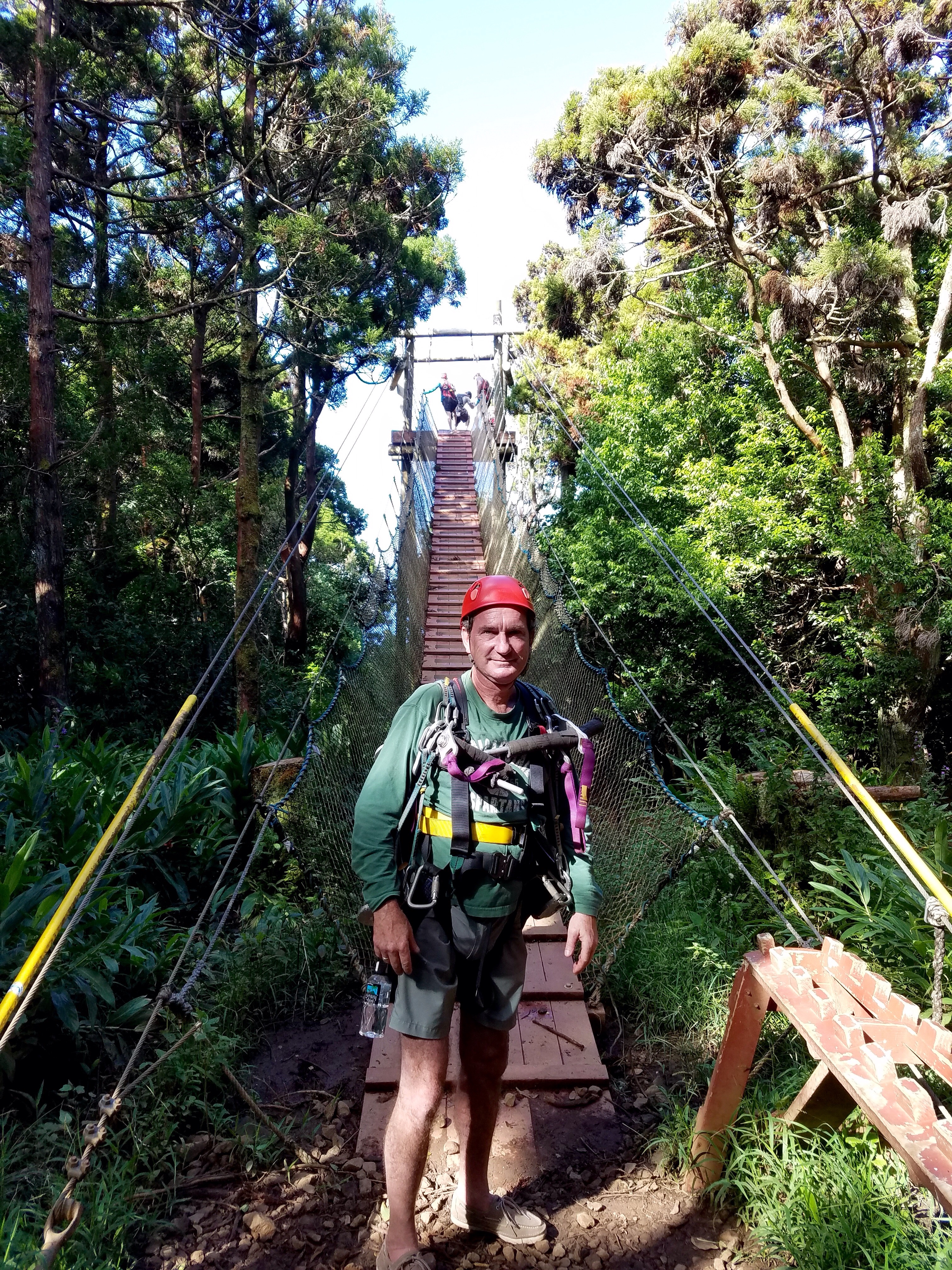 My intrepid partner in crime before our last hanging bridge for zip line number 6.