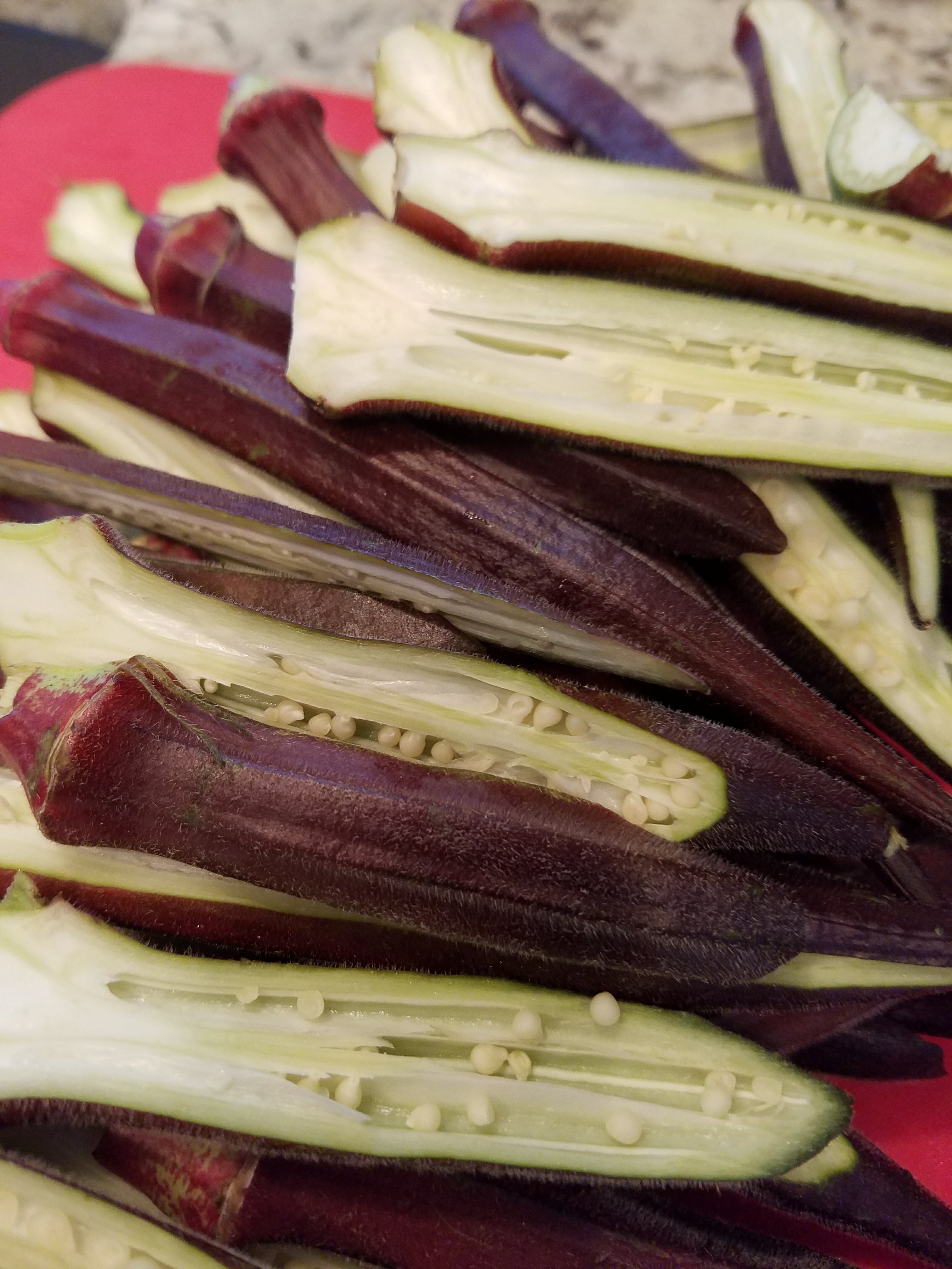 Great finds today @portcityproduce2 and @seaviewcrabcompany just up the road from me in little old Wilmington, N.C.. Burgundy okra roasted in bacon fat was crispy and fun to eat.
