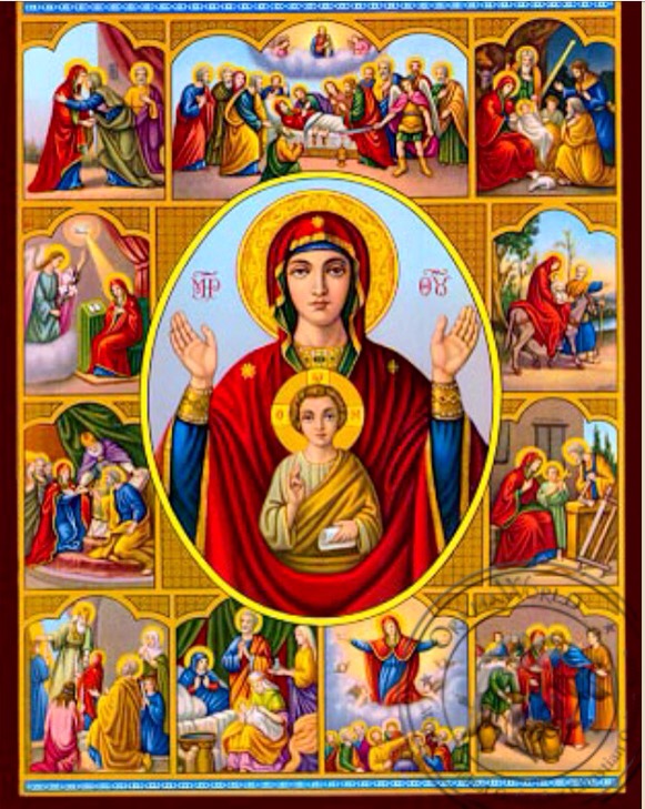 As you can see the Dormition is depicted in the images surrounding Mary and Jesus. Image courtesy of Orama World Orthodox icons.