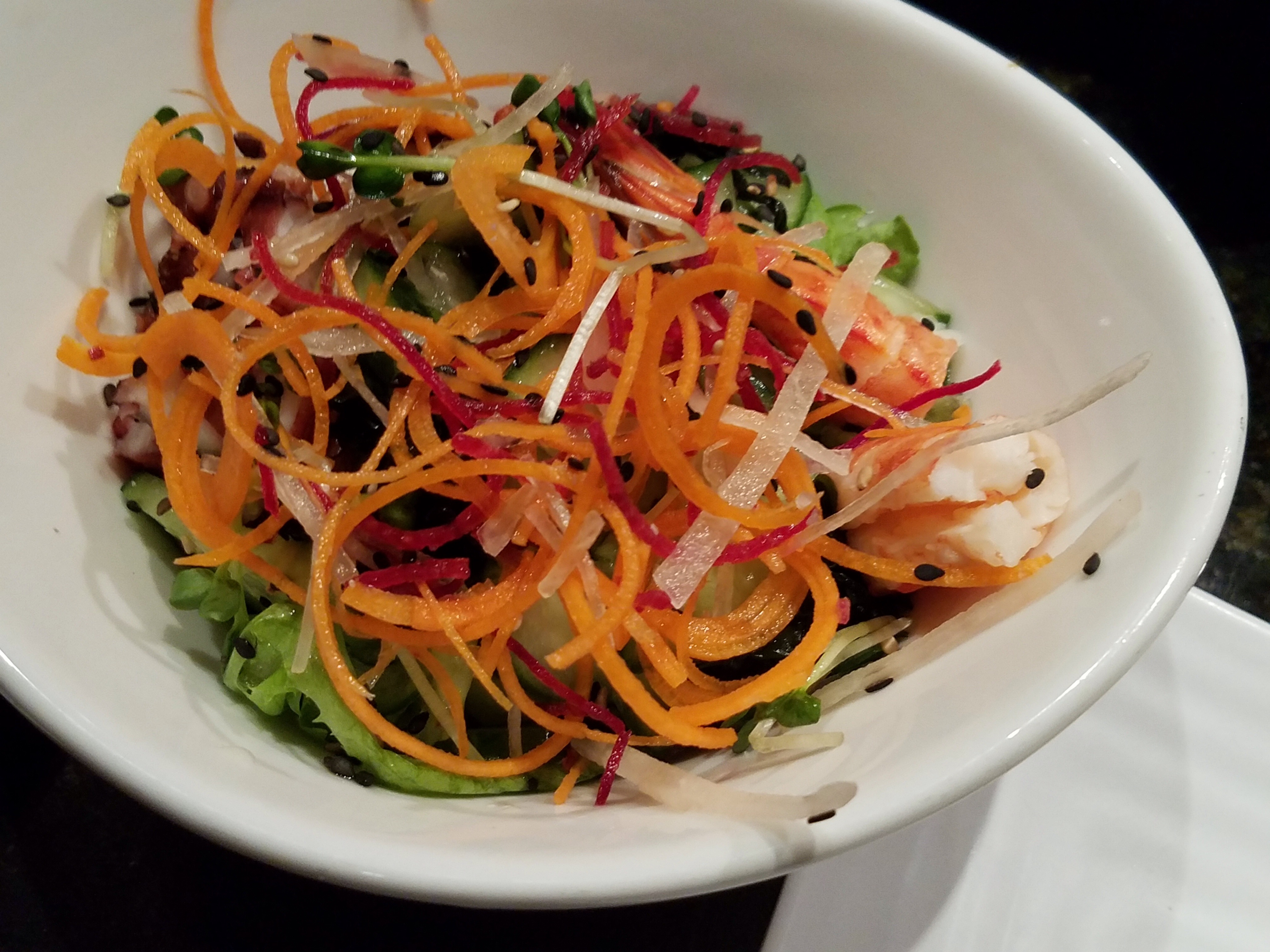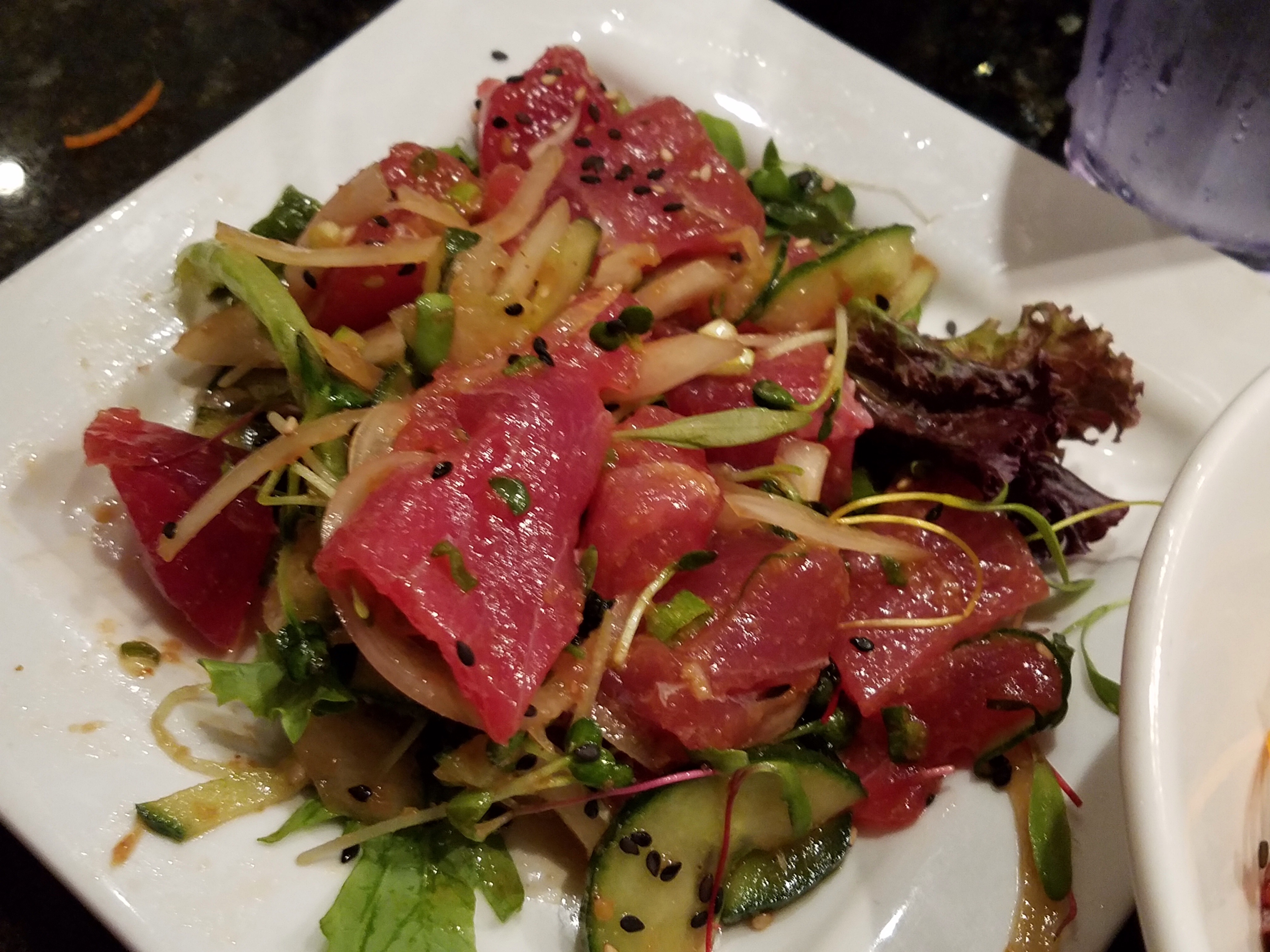 First night dinner on the isle hits all the right notes at Sansei Sushi Restaurant. Hawaiian Poke, Pink Cadillac roll, Sunonomo salad with octopus and shrimp, and Sansei Special roll….Uni for dessert. Mahalo!